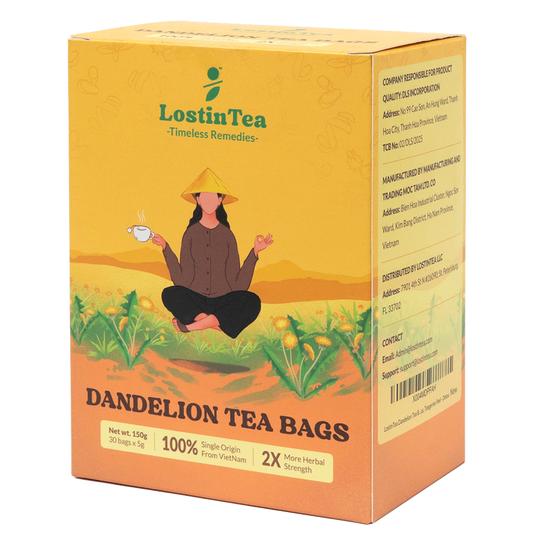 LoveinTea Dandelion Tea supports liver health, digestion, natural detox, and immune balance. Premium Vietnamese dandelion is rich in inulin, flavonoids, and taraxasterol – known for their anti-inflammatory and gut-supportive properties.